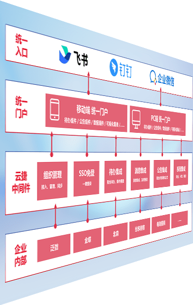 对协作平台提供支持服务,,支持企业应用与协作平台对接,,,,包含组织同步、、消息集成、、、、待办集成等。。支持目前主流的协作平台:钉钉、、、企微和飞书。。。。